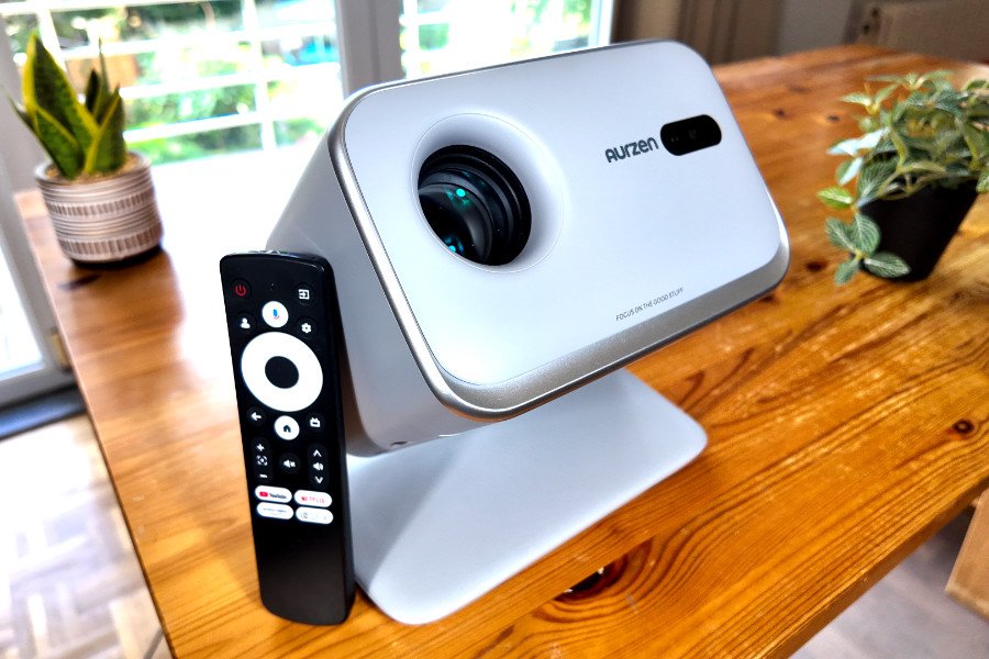 Ce projecteur est fourni avec une télécommande (dont les piles ne sont malheureusement pas incluses), un câble d’alimentation secteur, un manuel d’utilisation et 4 bâtonnets de nettoyage. L’appareil mesure 23 x 17 x 19 cm pour un poids de 2,2…